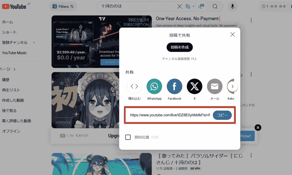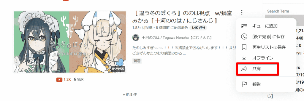 からYouTuber名(今回だと「十河ののは」)で検索して探す。