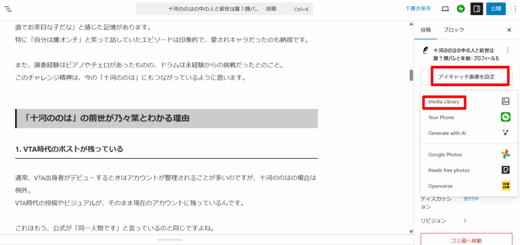 AIチェックとコピペチェックがともに問題なければ、ChatGPTが作った文章をワードプレスの編集画面に貼り付ける。
